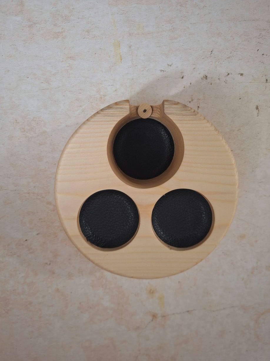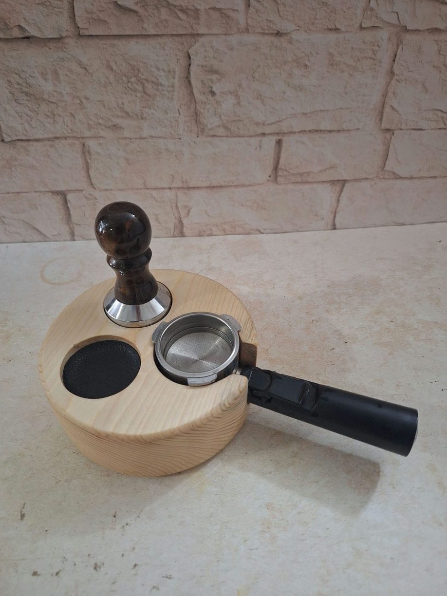 استند پرتافیلتر و تمپر سایز 51mm مدل دایره ای، یکی دیگر از محصولات منحصر به فرد تولیدشده توسط تیم آدمیرال ترنج می باشد که نمونه آن را در جای دیگر نمیابید. این محصول برای نگهداری قطعات جانبی قهوه ساز شما، شامل پرتافیلتر(portafilter)، تمپر(temper) و لولر(leveler) می باشد. محصول با رنگ خوراکی رنگ آمیزی و از چوب روس( نراد) تهیه می شود. برای سفارش به صورت عمده می توانید از طریق صفحه تماس با ما اقدام نمایید.